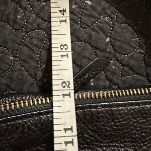 Elegant black hobo bag. Features gold-tone studs. Soft leather texture. Perfect for everyday use.