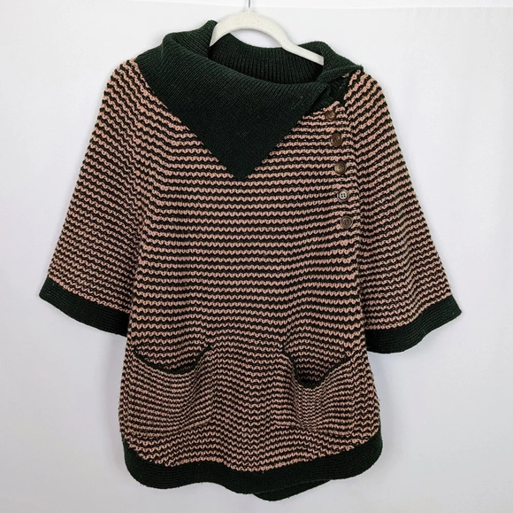Paul & Joe Sister Anthro. Archer Chunky Stripped Knit Poncho Oversized Sweater 4