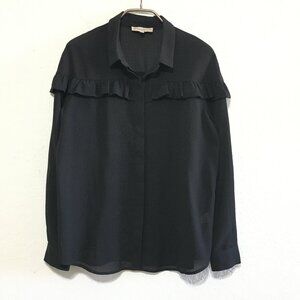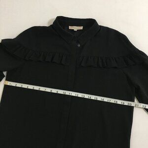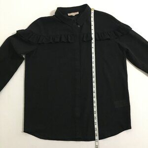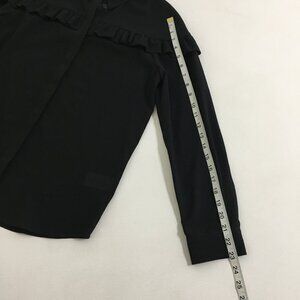 Paul & Joe Sister Black Flowy Semi-Sheer Blouse Size 3 Button Down Collar Ruffle