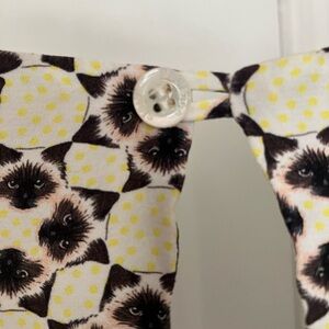 Adorable and chic, this Paul & Joe Sister blouse features a whimsical black and cream kitty face print on a soft mauve background. The relaxed silhouette, short sleeves, and playful design make it perfect for adding personality to any outfit.