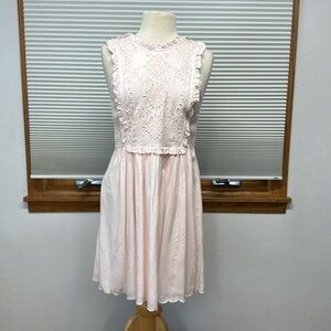 Paul & Joe Sister Baby Rose Pink Eyelet Ruffle Backless Mini Dress with pockets. Lined. Back zipper closure