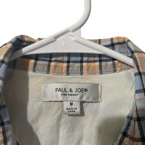 Paul & Joe for Target Orange & Blue Plaid Pear Button Down Top w/Embroidery