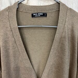Paul Jones Men’s Long sleeve V-Neck Button Down Cardigan Tan Size XL