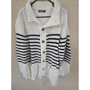 Paul Jones Sweater Men's XL White Black Striped Long Sleeve Ribbed Cardigan