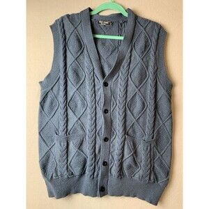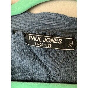 Paul Jones Sweater Vest XL Blue Chunky Button-Up Cardigan Pockets Vtg
