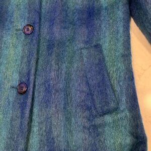 Paul Levy Vintage Blue Purple Green Plaid Striped Mohair Wool Coat Long 44” Bust