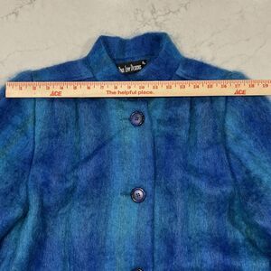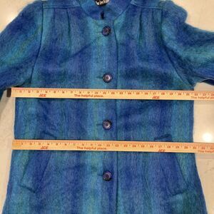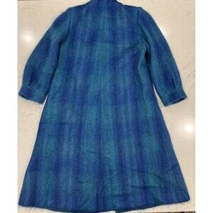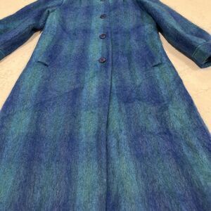 Paul Levy Vintage Blue Purple Green Plaid Striped Mohair Wool Coat Long 44 Bust