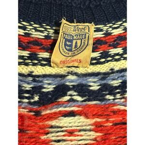 Paul Mage Hand Knit 100% Wool Danish Fair Isle Ski Sweater 1950s 1960s Vintage cozy cabin winter camping classic