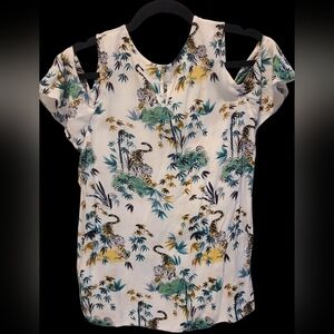 Paul Mark Tiger Print Cold Shoulder 100% Cotton Top Size Small