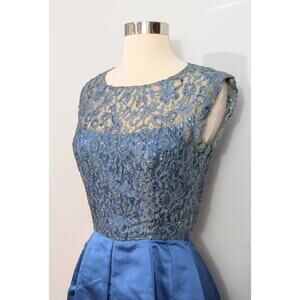 This dress is a stunner! The skirt will require careful pressing (I did a quick steam and while it's not as wrinkled as it looks since my lights added all kinds of shadows). The lace and sequins of the bodice are absolutely gorgeous. There are belt loops but no belt. The back zipper has been replaced with a newer plastic one.