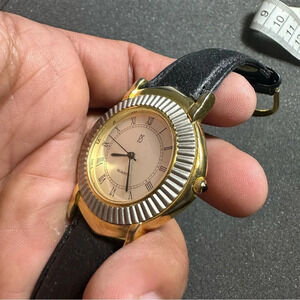 Paul Sebastian Analog Quartz Silver-Gold Tone 38MM Unisex Watch New Battery working band is starting to rip at lugs, may show signs of wear such as light scratches on case and crystal see pictures for reference