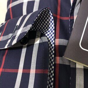 100% Luxury cotton, chest pocket , beautiful dark blue, red ,white