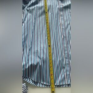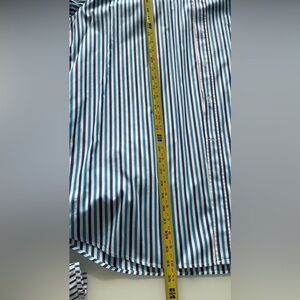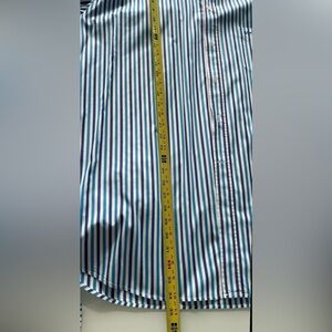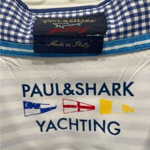 Paul & Shark Yachting men's navy blue/white striped preppy cotton button down. Coordinating fabric inside cuffs