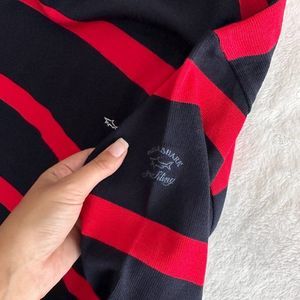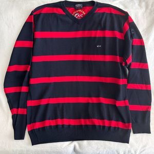 Paul & Shark Sweater Mens 3XL Wool Yachting Cool Touch Light Red Blue Stripe