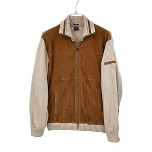 Full zip. Pure New Wool and Goat Leather. Made in Italy. Men's size 3XL.