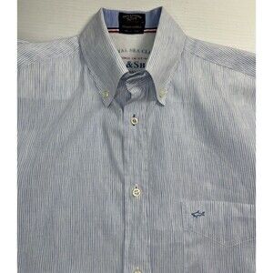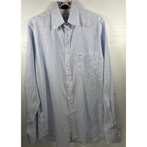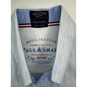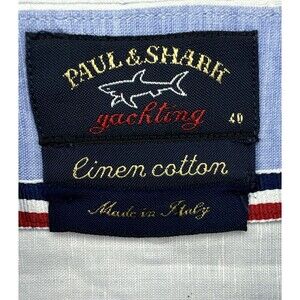 Paul & Shark Yachting Linen Cotton Blue White Striped Long Sleeve Shirt Size 40