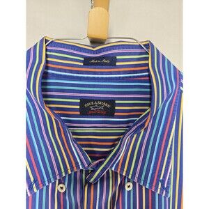 Paul & Shark Yachting long sleeve button front, button down collar shirt. Made in Italy. Blue background with multicolored stripes. Very colorful! Men's 3XL. Very good pre-owned condition. This shirt has always been professionally cleaned. As seen by the dry cleaners tag. Please see the last pic. No stains, snags or holes. Non-smoking home.
