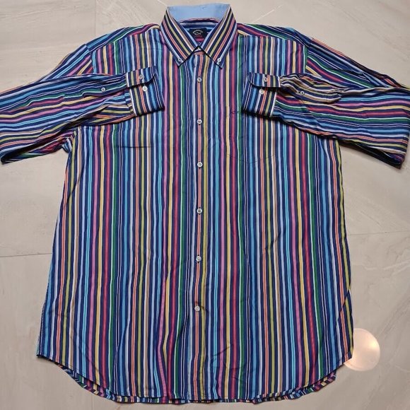 Paul & Shark Yachting Shirt Mens 44 Colorful Striped Cotton Made in Italy 44/XL