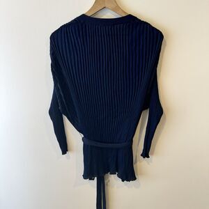 Excellent used condition Paul & Shark Yachting Womens Long Sleeve Blue Ribbed Cardigan Sweater Size Large. Removable tie belt.
