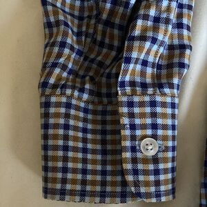 Paul and Shark NEW without tags blue and brown check shirt. Long sleeve with single button cuff, chest pocket, front button placket, button down collar and shirt tail hem. 100 cotton.
