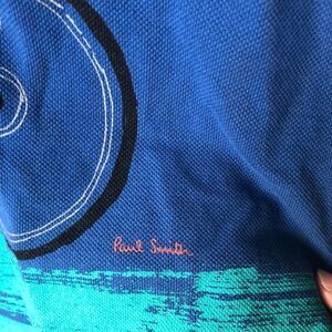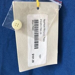 Stylish blue polo with a unique bicycle design. Perfect for kids.