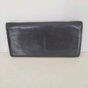 Paul Smith Designer Checkbook Card Bill Holder Wallet Black Bifold Leather Long