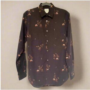 Paul Smith Guitar Folk Dress Shirt Mens Small Brown Cotton Button-Down Tailored