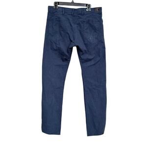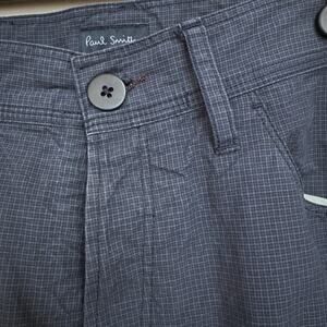 Classic Paul Smith Jeans (PSJ) men’s pants in navy blue micro-plaid. Button-fly, 5-pocket styling with PSJ patch. Tagged 34L; good preowned condition with signs of wear (light wrinkle/fade; see photos). Quality mid-weight cotton blend—great smart-casual trouser you can dress up or down.