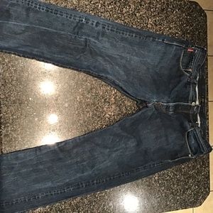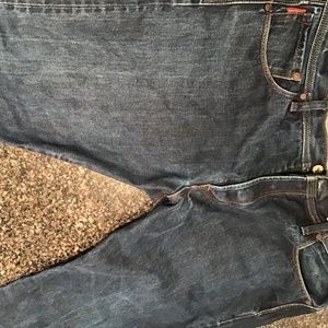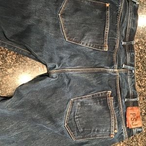 Lightly used Cone Mills Selvedge jeans by PSJ. In excellent condition. Size is 38R. The tag lists them as a 32L, but they definitely run short. I measured 30.75” inseam. Selvedge denim is highly sought after, especially Cone Mills Selvedge. This pair is a fantastic dark indigo with a button fly. With proper care (don’t overwash) this is a legendary pair of denim that will wear great for many years. No stains, rips, or holes. From a pet and smoke free home.
