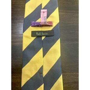 Paul Smith London Neck Tie 100% Silk Yellow Blue Striped Print Made In Italy