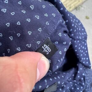 Gently used Paul Smith London The Byard Heart Print Dress Shirt in Navy. Good preowned condition - Some light wear from normal use.
