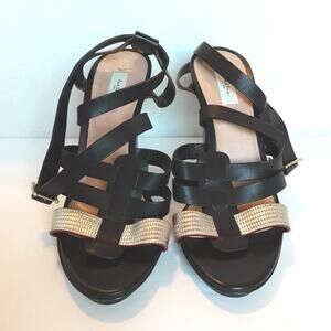 Paul Smith Made in Italy Strappy Black & Metallic Silver Luxury Heels 39 / 9