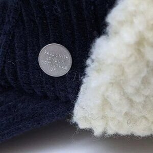 Paul Smith Men's Navy Corduroy Shearling Cap Trapper Hat Size M
