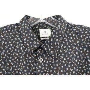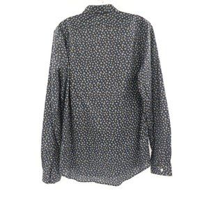 Stylish navy shirt with floral pattern. Button-down design. Perfect for casual wear.