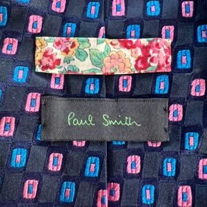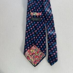 Paul Smith Necktie Men's Square Geometric Blue And Pink Silk England Designer