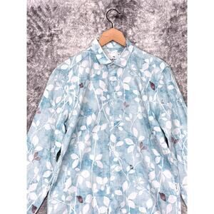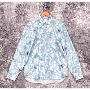 Paul Smith Shirt Medium Mens Tailored Fit Blue Linen Floral Long Sleeve
