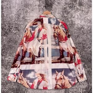 Paul Smith Shirt XL Mens Western Photo Cow Girl Long Sleeve Casual Button