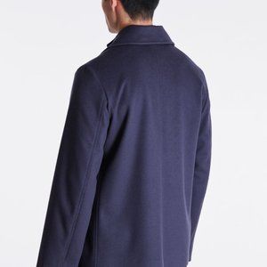 This dark blue pea coat is made from a soft wool and cashmere-blend and features a classic, timeless design with tonal under collar and contrast split-panel lining. It is lightweight so it's perfect for the change in seasons. With a relaxed fit, this is ideal for layering other pieces.