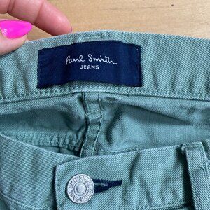 Paul Smith mens stretch green jeans sz 34L button fly tapered fit