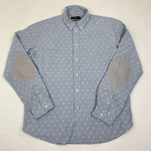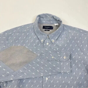 PAUL SMITH Men's Blue White Lightning Bolt Long Sleeve Button Down Shirt