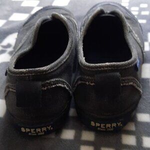 Paul Sperry Black Distressed Denim Look Laceless Slip On Sneakers Size 7.5