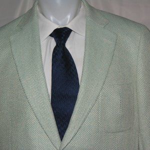 Paul Stuart 100% Silk Pale Green Herringbone Two Button Blazer 42L NWT