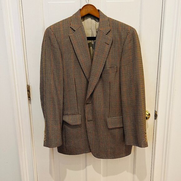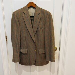 Paul Stuart Brown Gun Club Check Windowpane Tweed Wool Ticket Pocket Blazer 41 R
