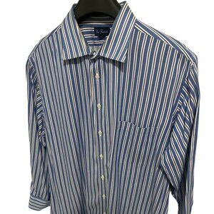 Paul Stuart Button Up Long Sleeve Stiped Shirt Mens Size XXL 18-34 Cotto…