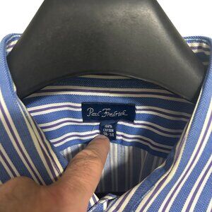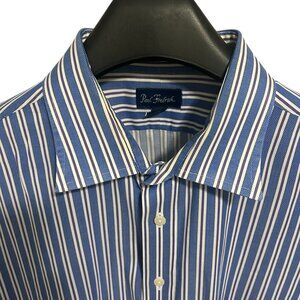 Paul Stuart Button Up Long Sleeve Stiped Shirt Mens Size XXL 18-34 Cotton Blue