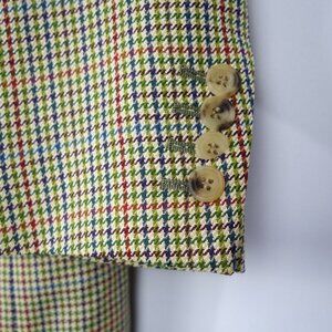 Paul Stuart Multicolor Houndstooth Check Silk & Wool Blazer Jacket, Sz 39 Tall