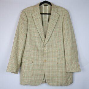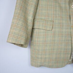 Paul Stuart Multicolor Plaid Pattern Silk, Wool & Linen Blazer Jacket, Sz 39 T