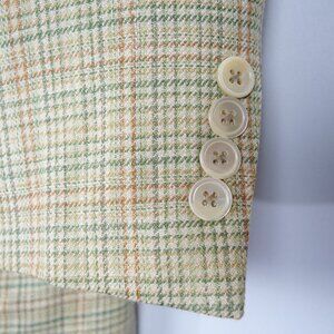 Paul Stuart multicolor plaid pattern silk, wool and linen blazer jacket.