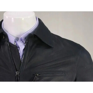 Paul Stuart Navy Blue Goat Leather Motorcycle Bomber Bike Jacket US XS