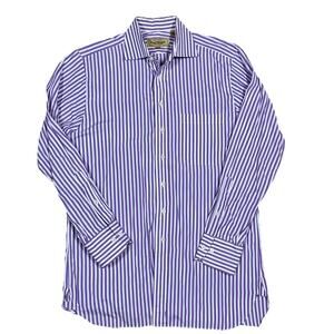 Paul Stuart Purple & White Stripe Long Sleeve Button Up Shirt 15 1/2 - 34 Medium